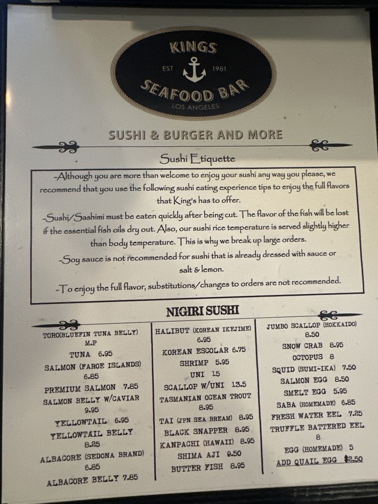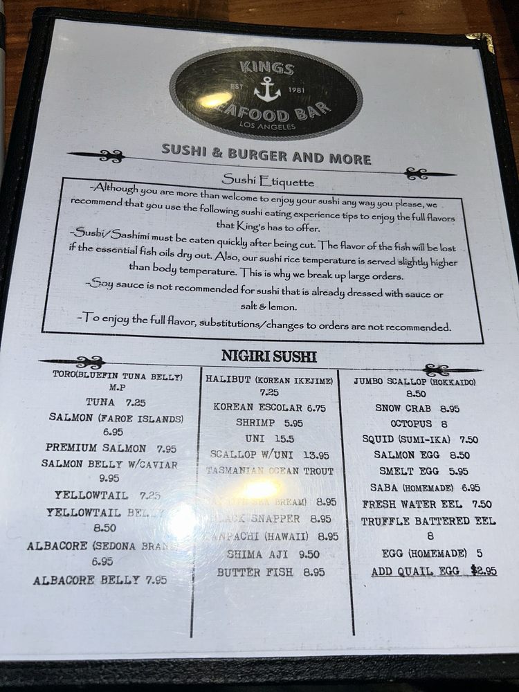 Got Sushi & King’s burgers Menu